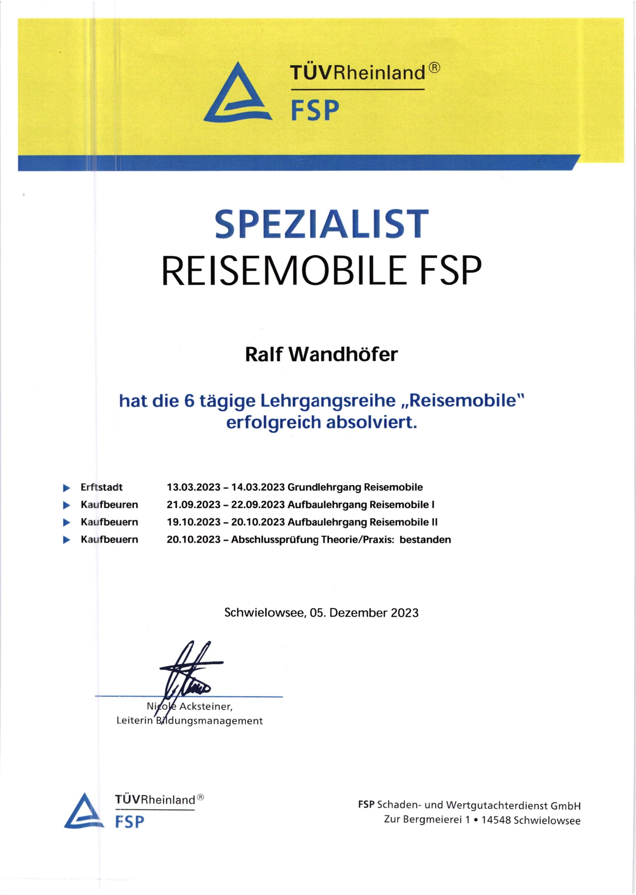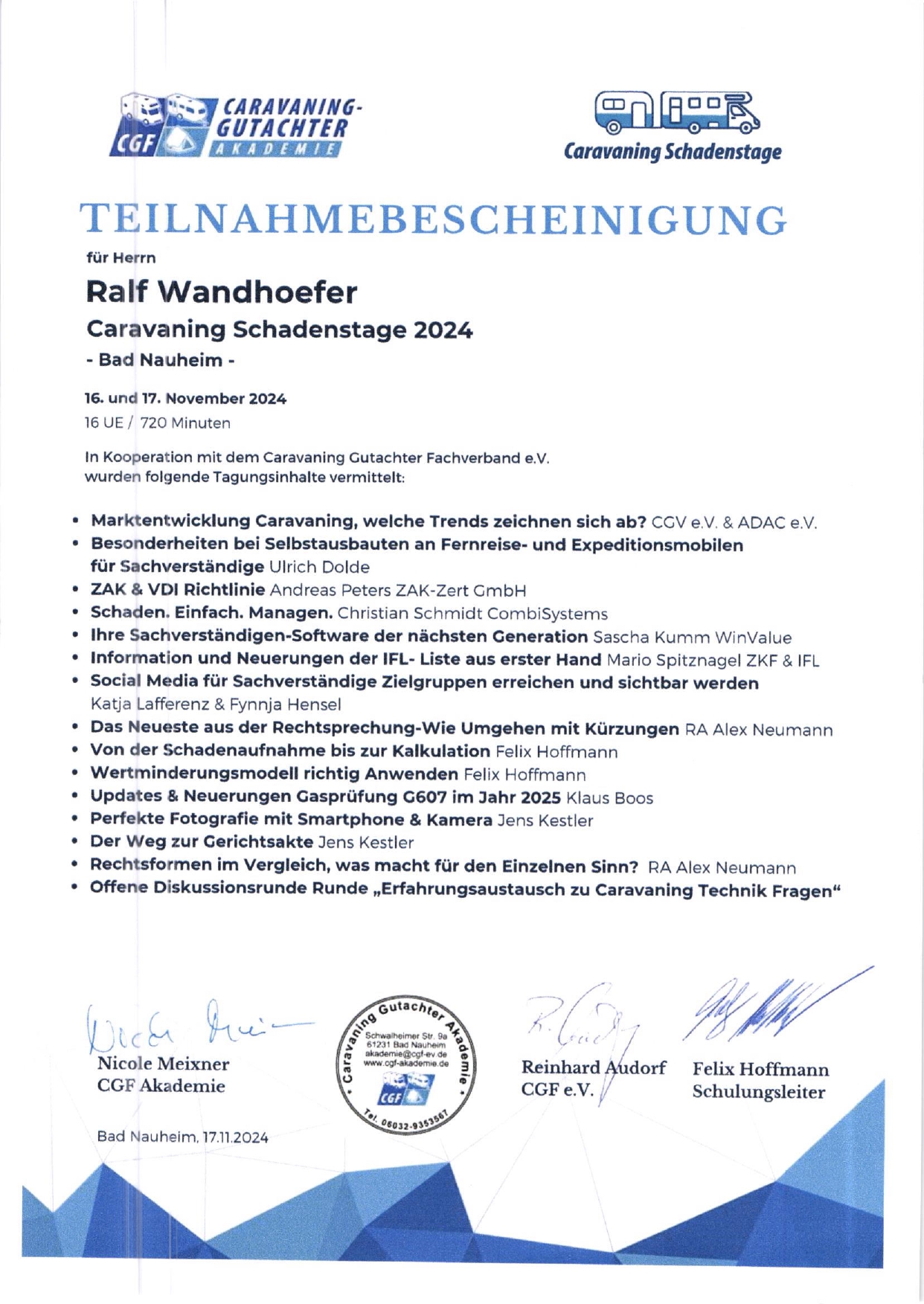*Personzertifizierung DIN EN ISO / IEC 17024 nach ADA InVivo BV